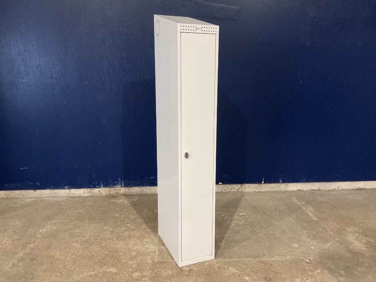 Brugt Metal Design Omklædningsskab, tjek vores hjemmeside for lager status, mål: H190,2”højeste mål” B30 D55 Varenummer: 1385