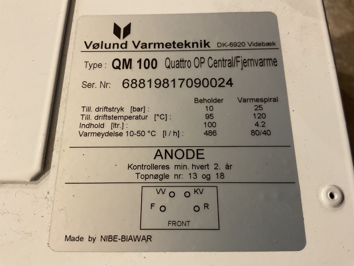 Brugt Vølund QM100 Quattro Varmtvandsbeholder | 100 L | informationer kan ses på billederne, mål: H100,7 B45 D44,5 Varenummer: 1409