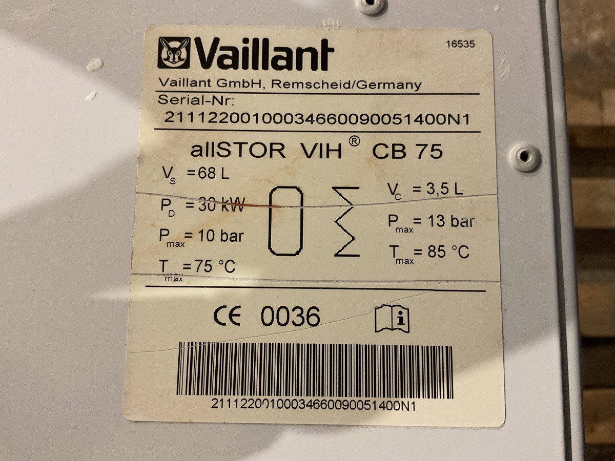 Brugt Vaillant Allstor VIH Q 75 B Varmtvandsbeholder | 70 Liter, informationer kan ses på billeder, mål: H72,2 B44 D44 Varenummer: 1414