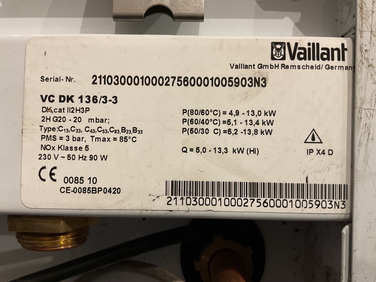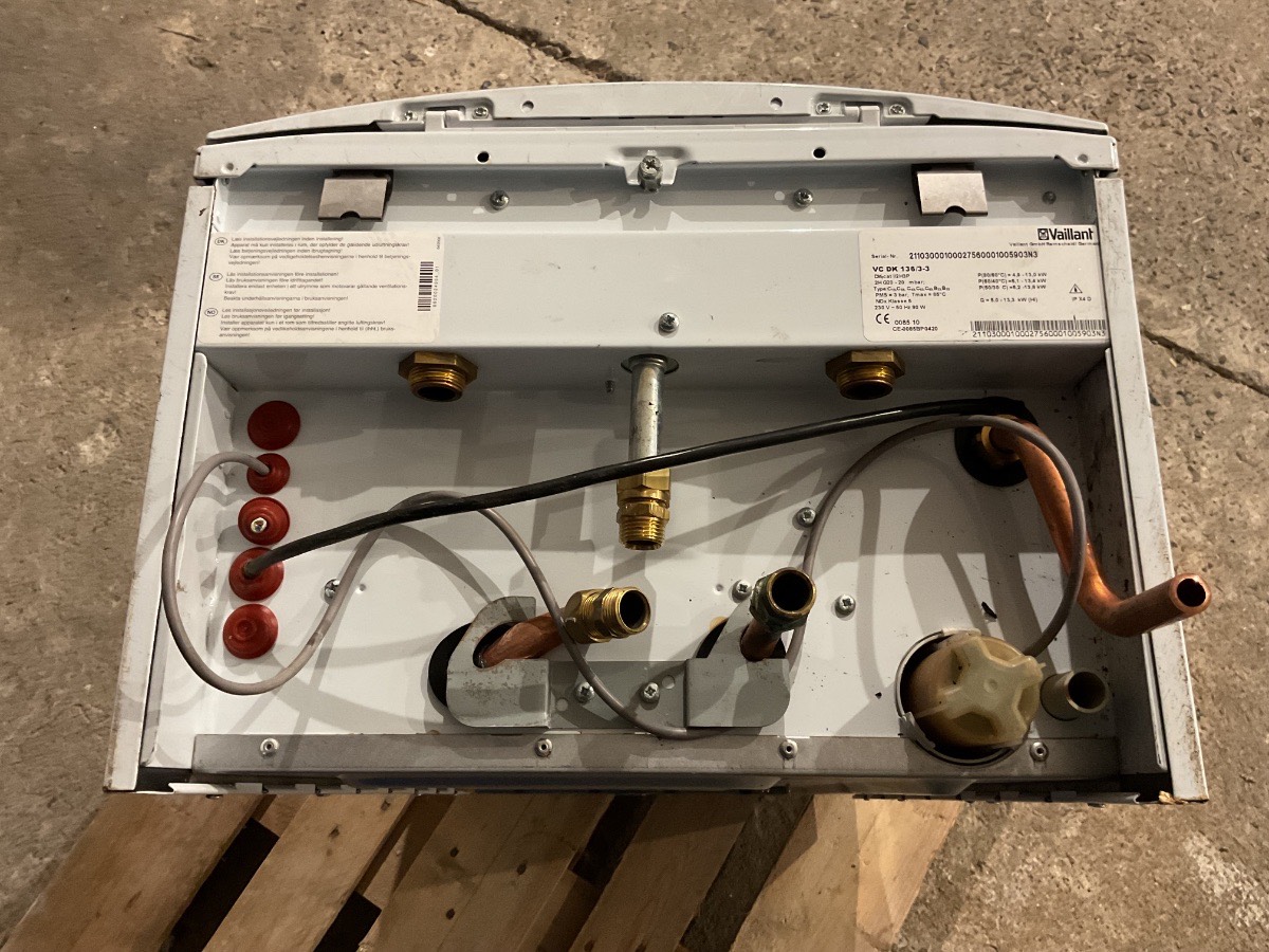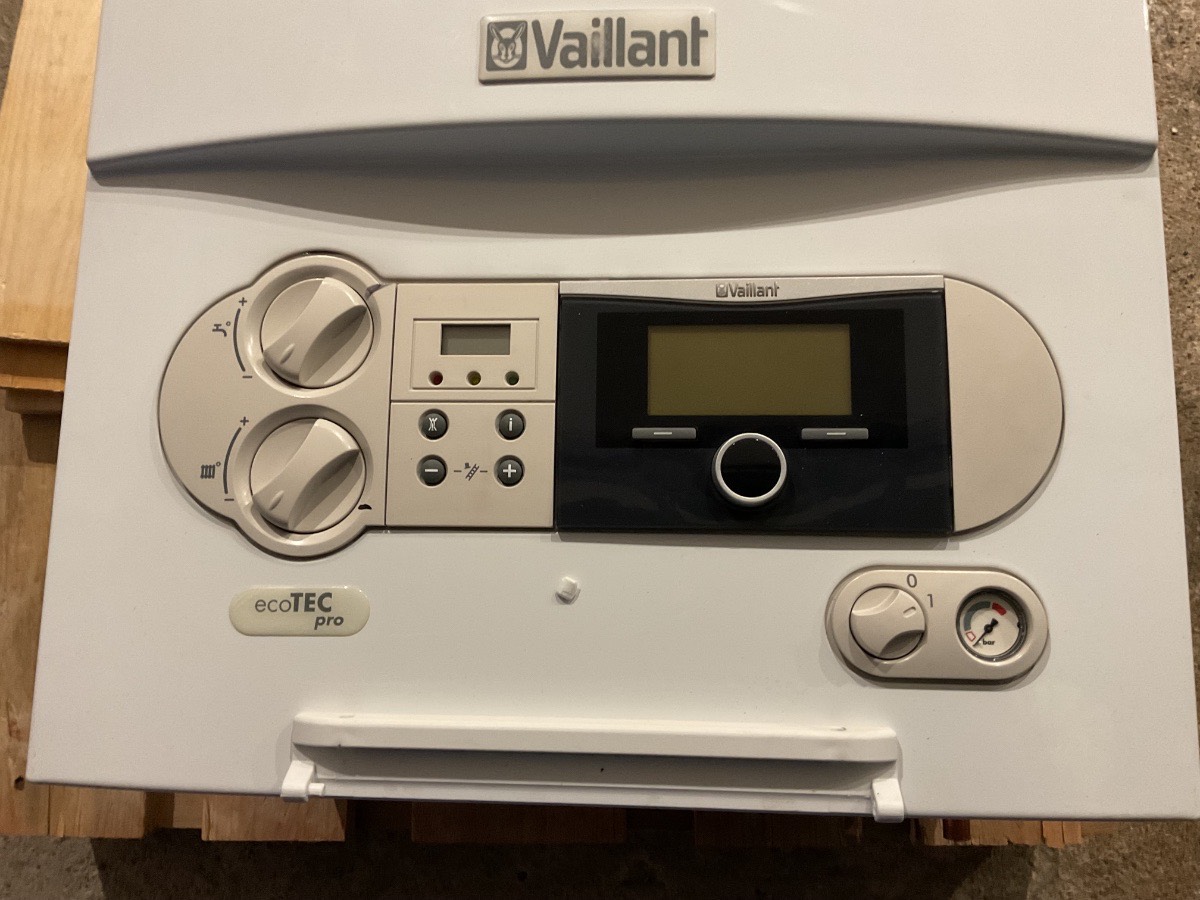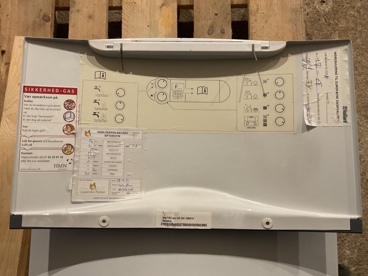 Brugt Valliant EcoTec pro Gasfyr, informationer kan ses på billeder, cover til panelet er knækket af, mål: H72 B44 D33,5 Varenummer: 1416