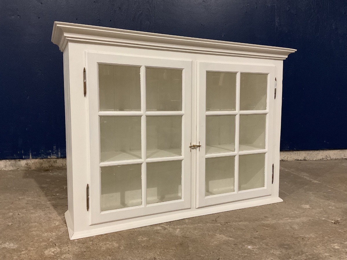 Snedkerlavet Vitrineskabe lavet af lokal, mål: H90,3 B129,1 D35,4 Varenummer: 1420