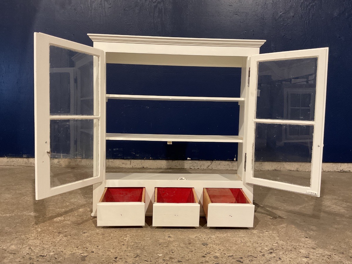 Snedkerlavet Vitrineskabe lavet af lokal, medfølger håndtag til skuffer, mål: H110 B106,4 D35,8 Varenummer: 1422