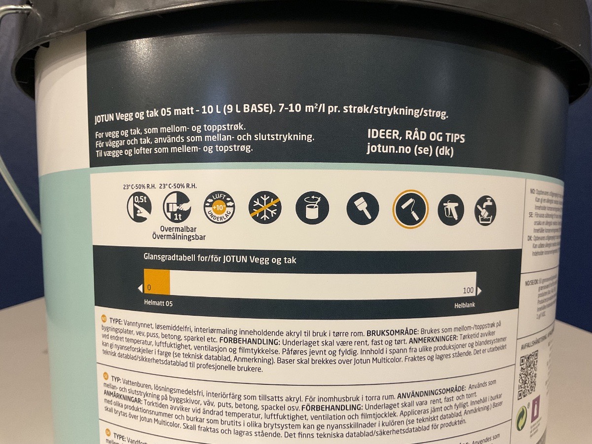 Ny - Med JOTUN Væg og Loft får du en 2-i-1 maling, som gør malerarbejdet nemt. Malingen er nem at påføre, dækker godt og giver et pænt resultat. Effektiv og rimelig renovering. 2-i-1 til væg og loft Nem at påføre Tørrer hurtigt - overmalbar efter 1 time Varenummer: 1453 Glans 5, Hvid
