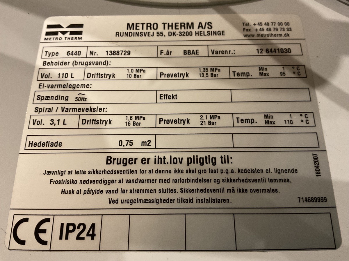 Metro Varmtvandsbeholder 110 Liter