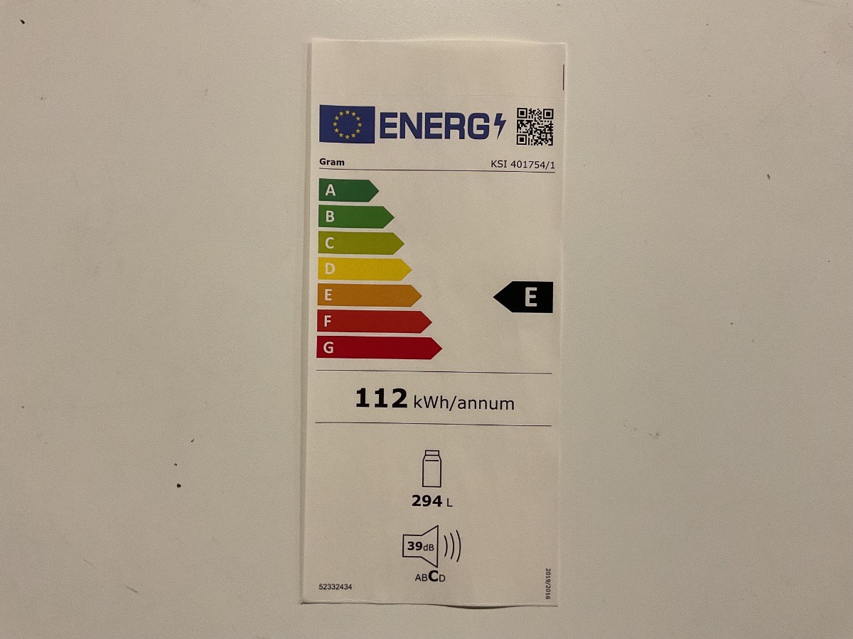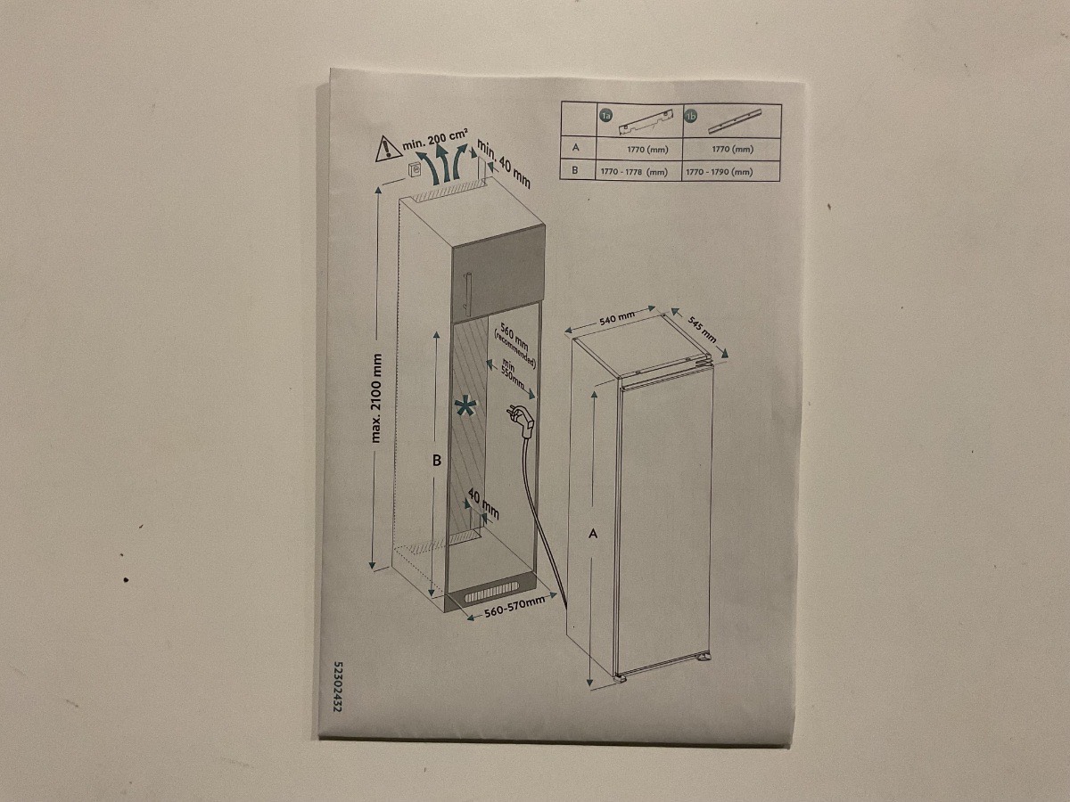 Ubrugt Gram Indbygningskøleskab Ksi401754/1, medfølger beslag til front, mål: H177 B54 D54,5 Varenummer: 1468