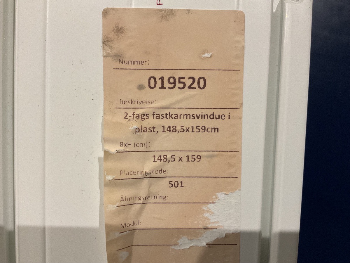 Ubrugt Rehau Vinduesparti, Plast/Plast, 3 lag glas, Fastkarm/Fastkarm, mål: H159 B148,5 D12 Varenummer: 1479 2, 3 lags glas, Fastkarm, Termovindue, Plast/Plast