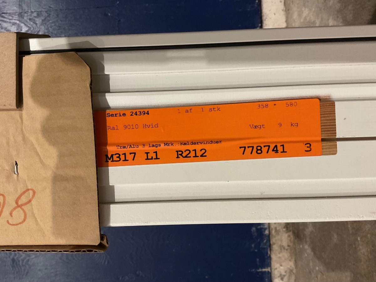 Ubrugt Kpk Vindue, Alu/træ, 3 lag glas, matteret, topstyret, mål: H58 B35,8 D12,5 Varenummer: 1486 1, 3 lags glas, Topstyret, Termovindue, Træ/Alu, KPK