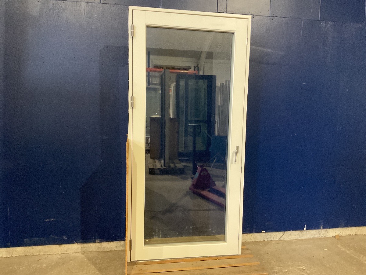 Brugt Rationel Terrassedør, Alu/træ, venstrehængt, indadgående, alubundstykke, 2 lag glas, har skruehuller på karmen, mål: H220,5 B106,5 D12,3 Varenummer: 1492 Venstrehængt, Indadgående, Enkelt, 2 lags glas, Hårdt træ, Træ/Alu, Rationel