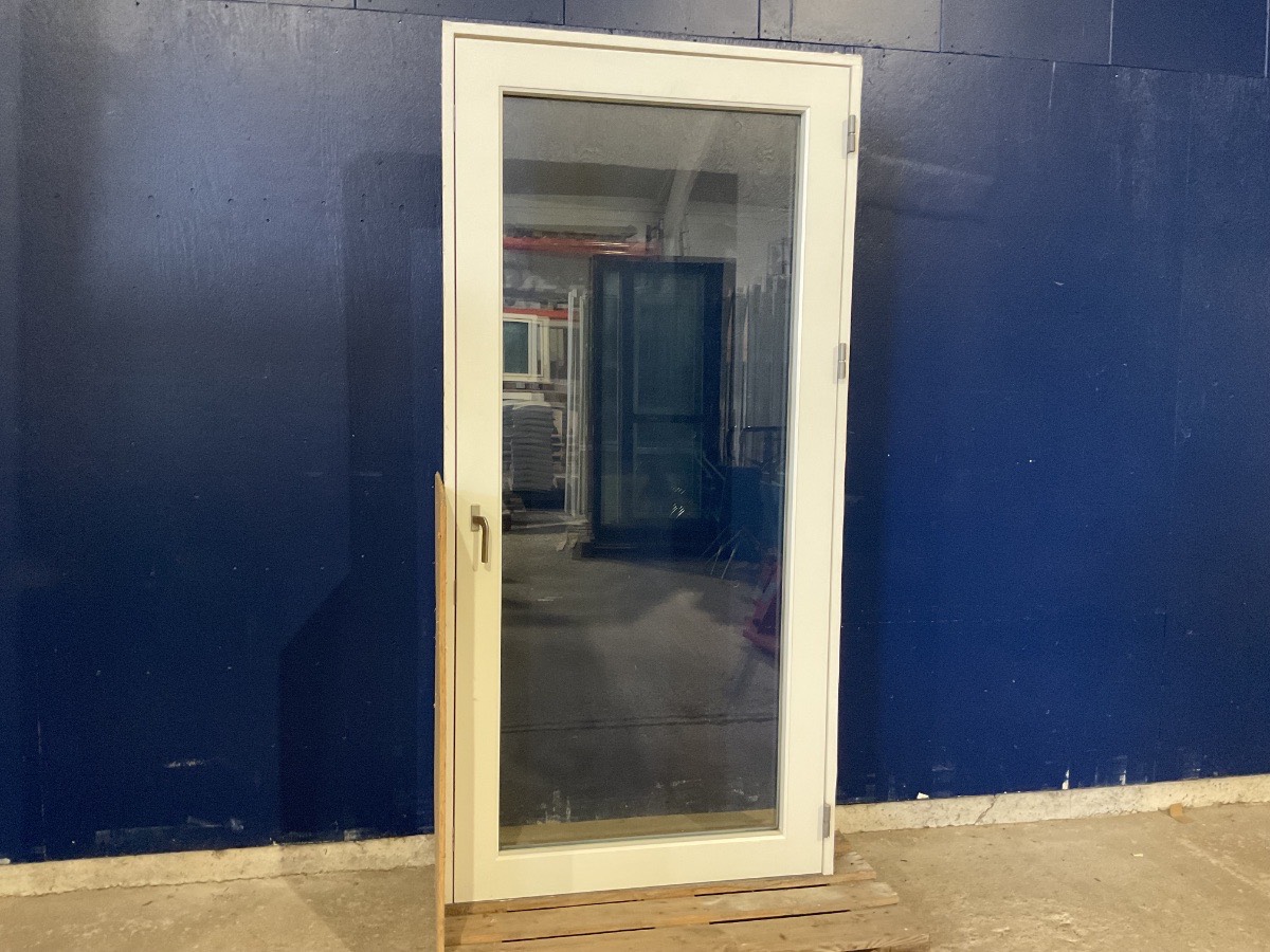 Brugt Rationel Terrassedør, Alu/træ, højrehængt, indadgående, alubundstykke, 2 lag glas, mål: H220,5 B106,5 D12,3 Varenummer: 1498 Højrehængt, Indadgående, Enkelt, 2 lags glas, Alu, Træ/Alu, Rationel
