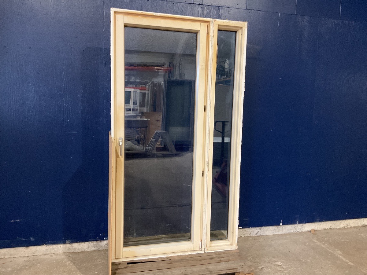 Brugt Velfac Terrassedør m. Sideparti, Alu/træ, 2 lag glas, højrehængt, indadgående, udluftning, sidepartiet kan afmonteres og rykkes rundt på, mål: H211 B118 D12,6 Varenummer: 1525 Højrehængt, Indadgående, Enkelt, 2 lags glas, Sideparti, Hårdt træ, Træ/Alu, Velfac