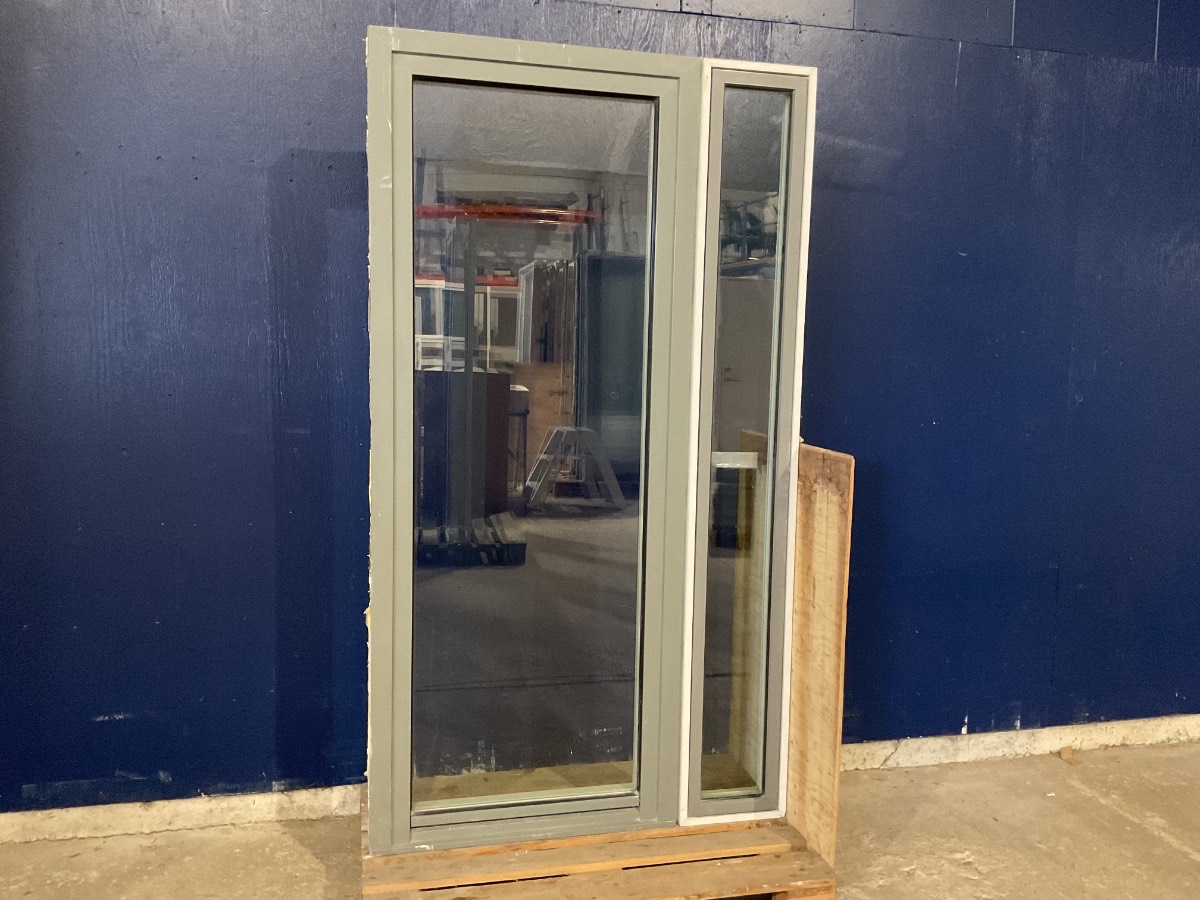 Brugt Velfac Terrassedør m. Sideparti, Alu/træ, 2 lag glas, venstrehængt, indadgående, udluftning, sidepartiet kan afmonteres og rykkes rundt på, mål: H211 B118 D12,6 Varenummer: 1527 Venstrehængt, Indadgående, Enkelt, 2 lags glas, Sideparti, Hårdt træ, Træ/Alu, Velfac
