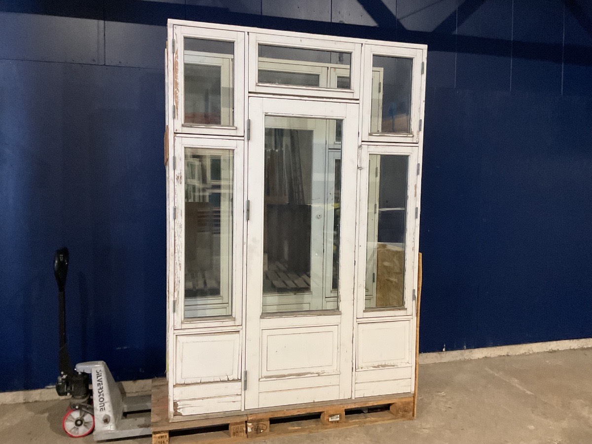 Brugt Terrassedør m. Over/Sidepartier, Træ/træ, højrehængt, udadgående, 2 lag glas, hårdttræsbundstykke, sidehængt/topstyret, mål: H244,8 B169,3 D11.5 Varenummer: 1530 Venstrehængt, Udadgående, Enkelt, 2 lags glas, Sideparti, Overparti, Hårdt træ, Træ/Træ, Andet