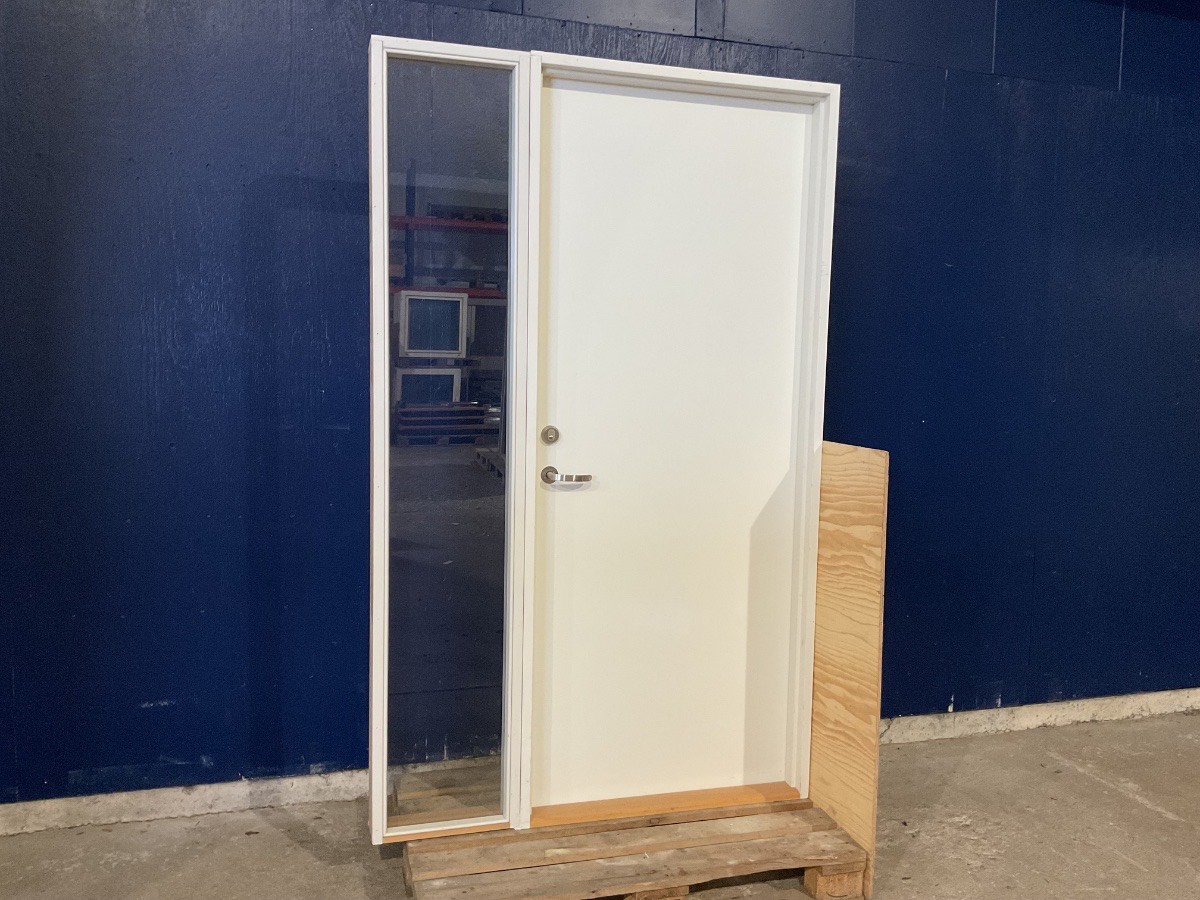 Brugt Indvendig dør m. Aftageligt Sideparti, Træ/træ, venstrehængt, indadgående, hårdt, medfølger ikke nøgle, sidepartiet kan aftages og rykkes rundt på, mål: H209,2 Bredde med sideparti B129,1, Bredde uden sideparti B88,8, D12,3, tjek vores hjemmeside for lager status! Varenummer: 1536 Venstrehængt, Indadgående, Enkelt, 1 lags akryl, Sideparti, Hårdt træ, Træ/Træ, Andet