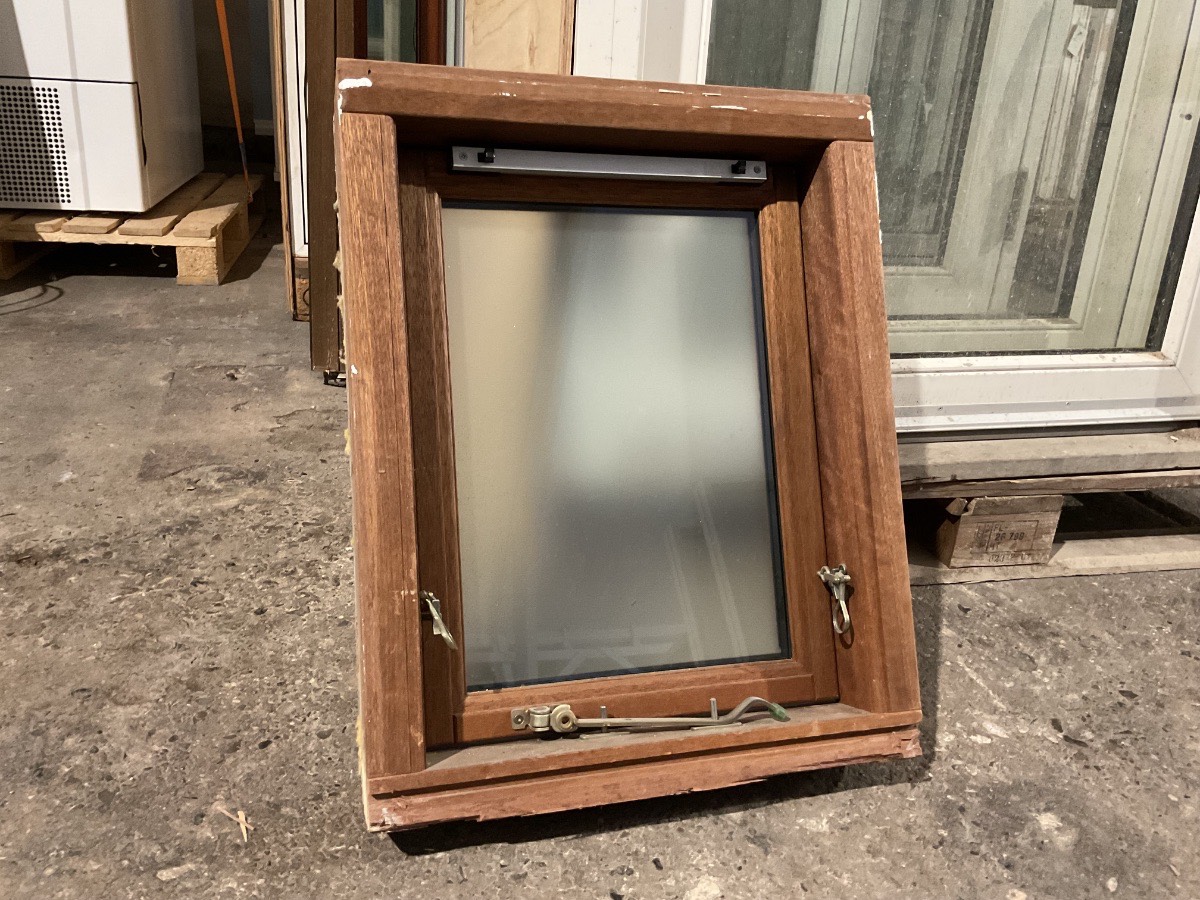 Brugt Mahogni vindue matteret Varenummer: 1552 1, 2 lags glas, Topstyret, Udluftning, Træ/Træ