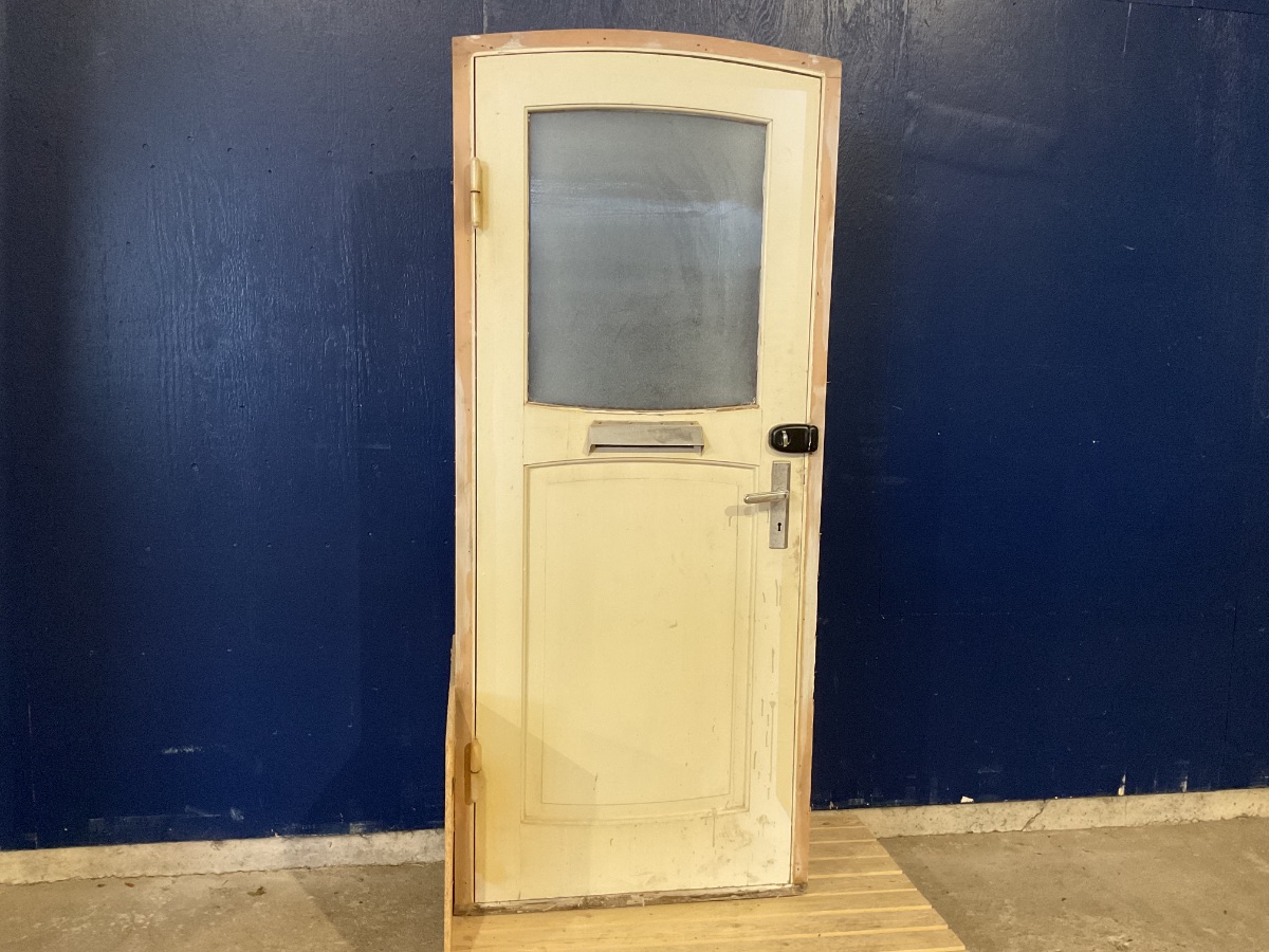 Brugt Gammel Yderdør, Træ/træ, venstrehængt, indadgående, hårdttræsbundstykke, 1 lag glas, nøgle medfølger ikke, mål: H207,3 B88 D12.2 Varenummer: 1636 Venstrehængt, Indadgående, Enkelt, 1 lags glas, Hårdt træ, Træ/Træ, Andet